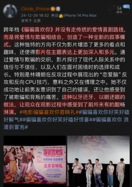 这个片的笑点太多,金晨、孙阳还有舅舅,他们仨频频在小红书回报别东说念主对于骗骗的口碑,还是启动有“笑到喷涎水”的活东说念主售后。
