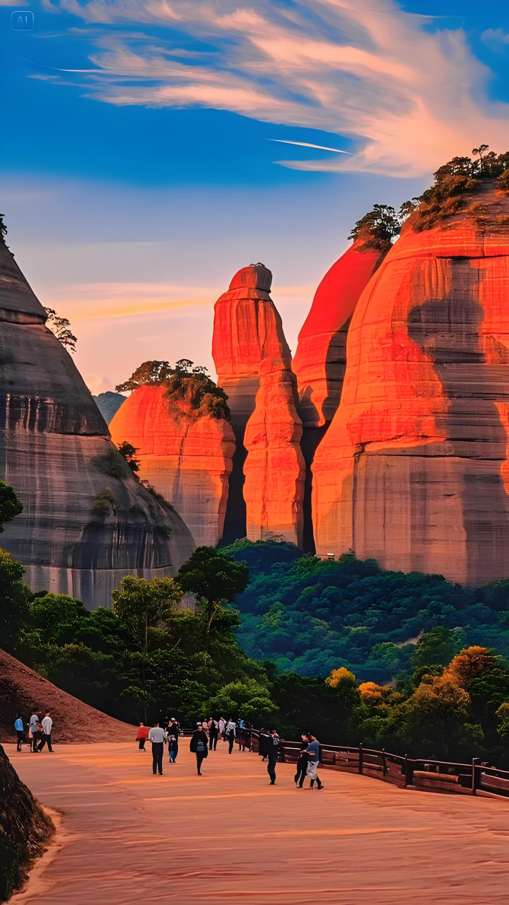 特色亮点:丹霞地貌的定名地,"色渥如丹,灿若明霞",阳元石、阴元石等当然奇不雅令东说念主咋舌;长老峰、翔龙湖、锦江画廊等景点各具特色