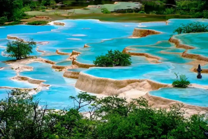 中枢景不雅:3400余个钙华彩池、钙华滩、钙华瀑布、钙华溶洞
