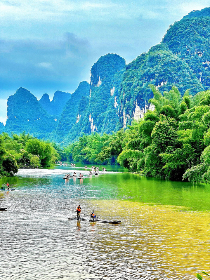 特色亮点:漓山河水如花繁花,"百里漓江,百里画廊",乘竹筏漂浮可观赏两岸奇峰异石;象鼻山是桂林的象征,形似大象饮水