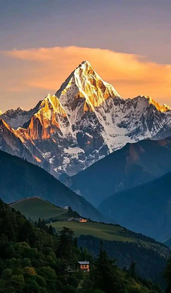 特色亮点:长年积雪,霏霏缭绕,贫乏一见真容,"十东说念主九不遇";日落本事,金色阳光洒在雪山上,"日照金山"景不雅震荡东说念主心;是藏族东说念主民意中的神山