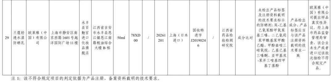 关于抽检不对格居品,欧莱雅(中国)有限公司提倡样品简直性异议。经上海市药品监督解决局审查,该企业未出产能够入口过该批次抽检不合乎规则居品。
