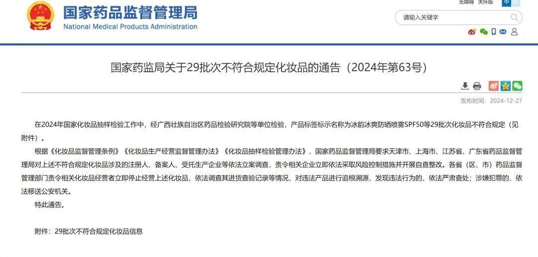 29批次化妆品不对格!入口儿童润肤乳菌落总和超标12倍。
