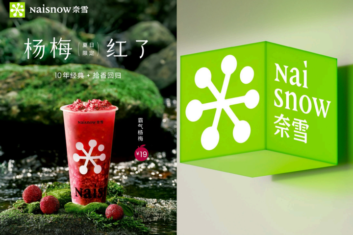 具体来看,奈雪本次新 Logo 以「雪花」和「果实」为中枢元素,沿用了秀美性的奈雪绿色彩。面前新 Logo 已欺诈于十年经典回首茶饮「霸气杨梅」包装及部分新店,后续将慢慢解除线上线下全渠说念。