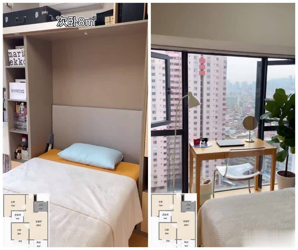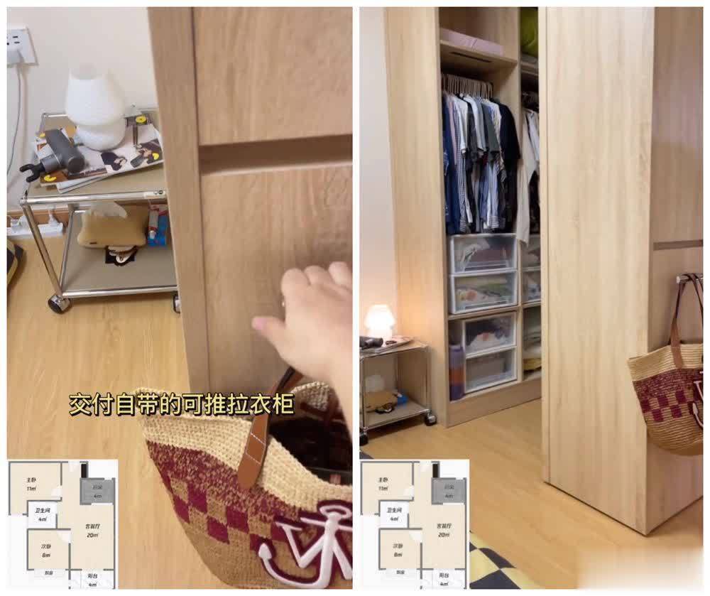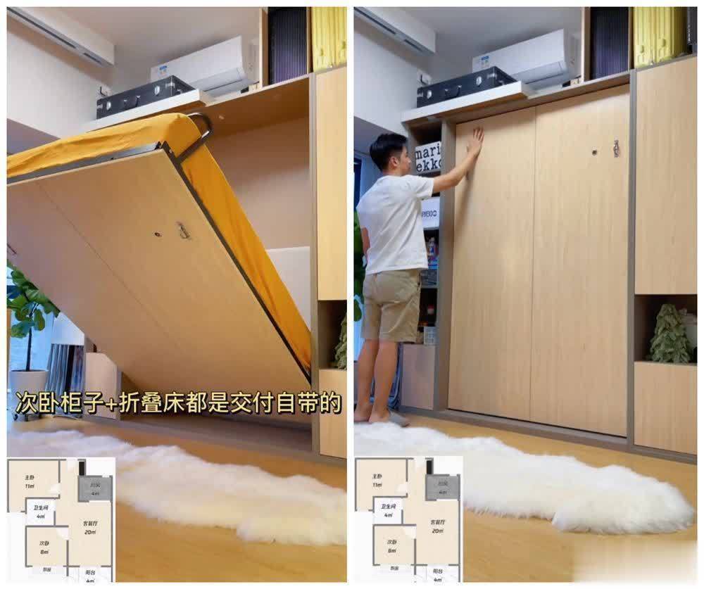 最初,床铺是买房时自带的“墨菲床”,可收入墙壁柜内,开释室内空间。