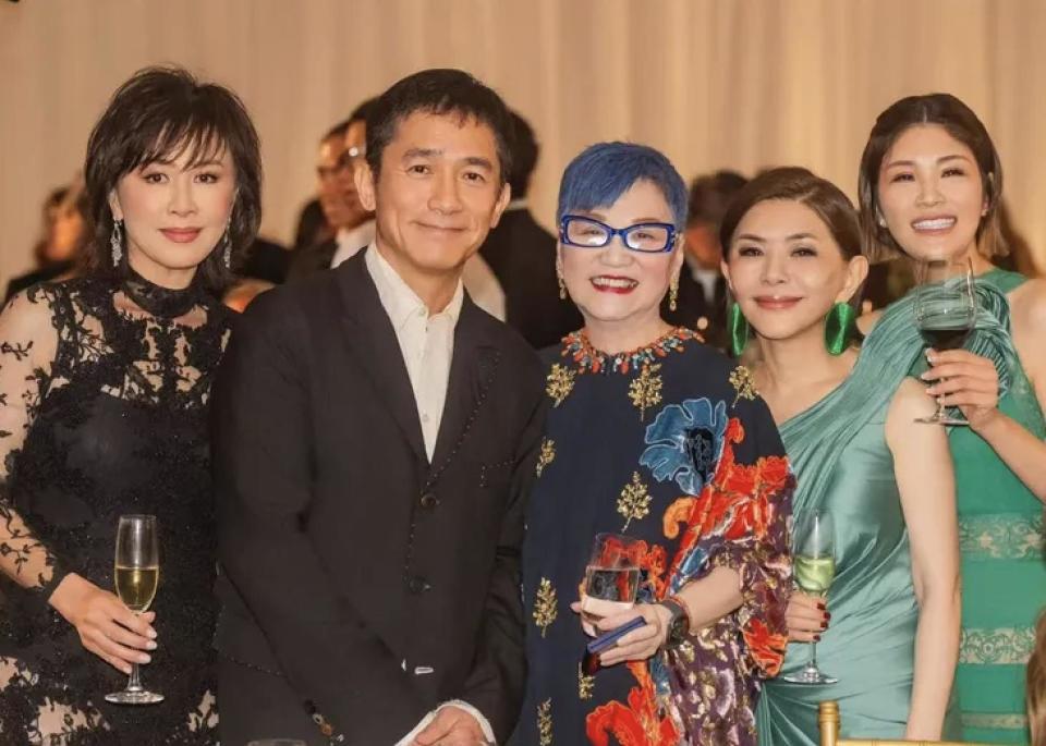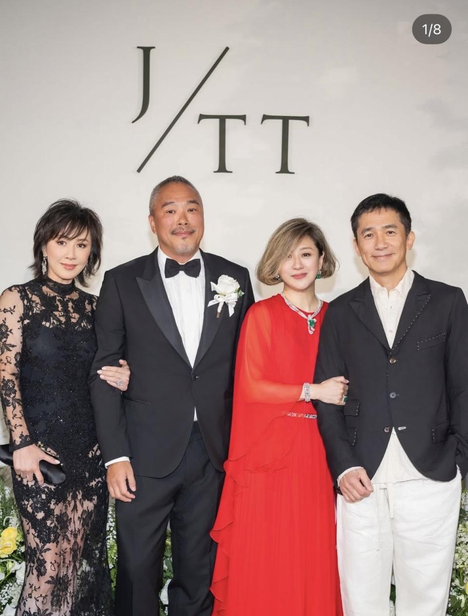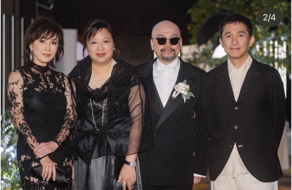 香港明星在台湾各界的闻明度照旧颇高的,贫困来了一组 90 年代的巨星,他们当然成为全场最受接待的东说念主士,各路东说念主马齐要与他们合照,而他们也齐有求必应,杰出是刘嘉玲、梁朝伟,闻明度最高。刘嘉玲配偶分辩与新郎的父母,新娘的父母合照,与新郎父母合照的时辰,刘嘉玲挽着新郎父亲的手,新郎母亲挽着梁朝伟的手,蔡佳桦并立红色长裙搭配绿翡翠,十分抢镜,显得年青又大方。此外,匹俦俩还与在场的台湾名东说念主,包括久未露脸的张小燕一齐,合照的时辰张小燕站在中间,备受尊重,而张清芳、李明依等台湾歌手也在场。