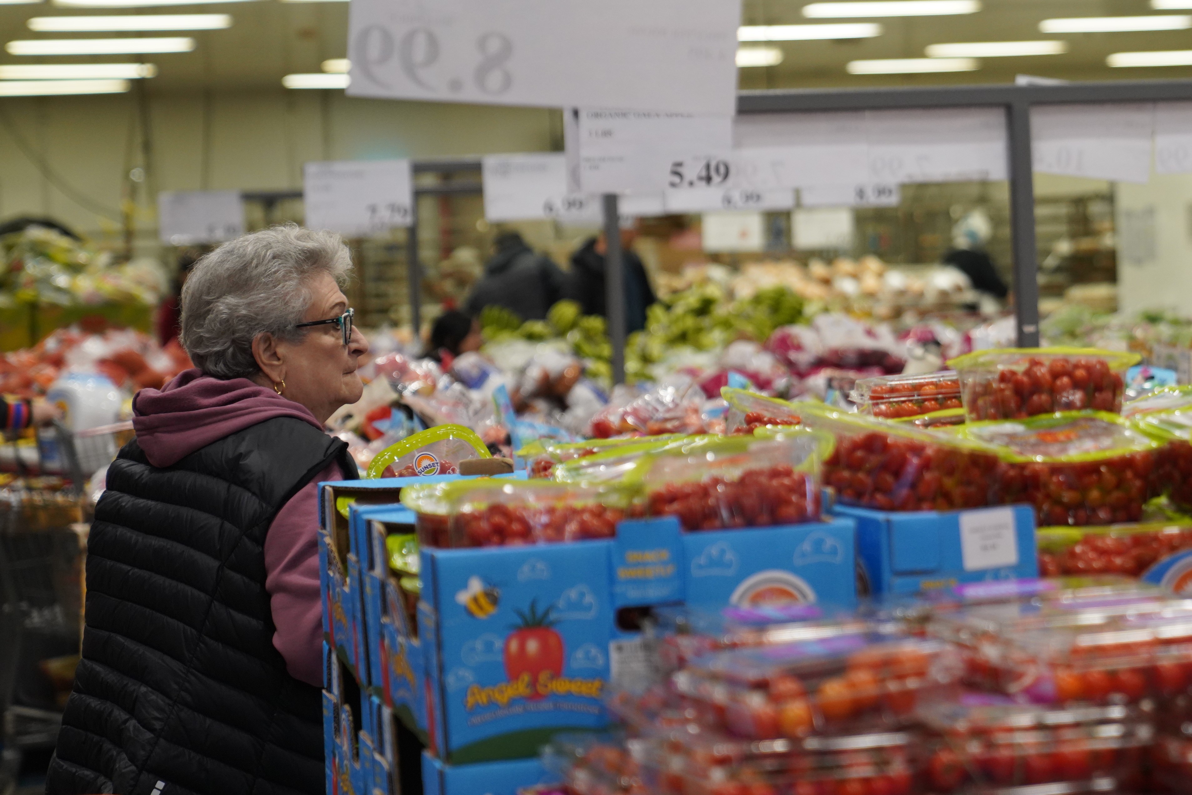 4月10日,市民在好意思国纽约一家超市购买生涯用品。