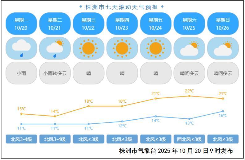 红网本领新闻10月20日株洲讯(记者 任欣蓓 通信员 东风)刚履历“换季式”降温的株洲,本周将开启“先冷后暖”的天气疏通。据株洲得志部门音书,10月20日至26日全市呈现前雨后晴模式,20至21日漆黑伴大风降温,22日起放晴升温,恰逢23日霜降骨气欧洲杯体育,日夜温差拉大需注目防护。回来上周(10月13至19日),株洲天气呈现显然波动,周末较强冷空气带来 “断崖式” 降温,24小时最高气温降幅达10℃,最低气温跌至14℃,让市民体验了“通宵入秋”的体感。本周(10月20日至26日)前雨后晴,气温冉冉回升。20日至21日受冷空气抓续影响,全市督察阴天有小雨,最低气温将进一步降至11℃,北风风力增大至3~4级,寒意显然增强。22日起天气迎来回荡,全市转为晴好模式,气温干涉冉冉回升通说念,25日最高气温将升至22℃把握。值得注目的是,23日霜降骨气今日,当作秋季临了一个骨气,霜降骨气后气温波动加重,市民需遵照“迟早添衣、中午减衫”的原则。具体天气预告如下: