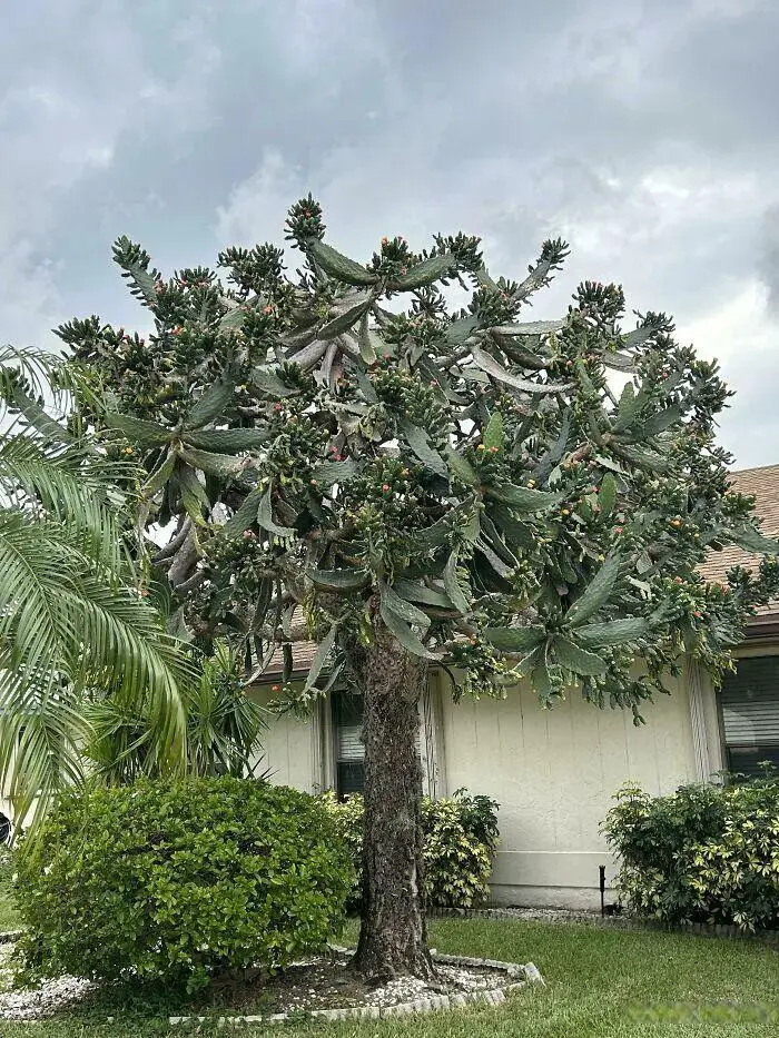 17、这株像树又像仙东说念主掌的植物,叫作念加勒比树状仙东说念主掌,是仙东说念主掌科植物,学名Consolea moniliformis,原产于古巴及多米尼加等加勒比海沿岸地区。树干站立呈树状,高4到7米。
