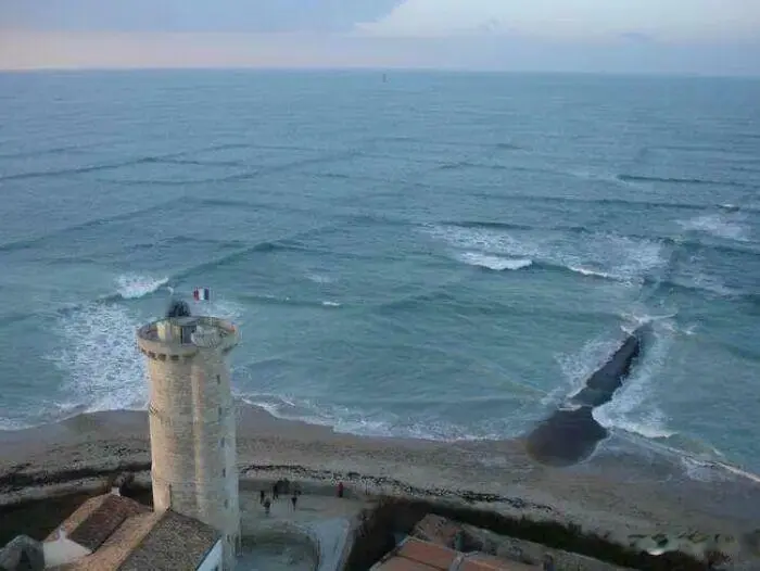 5、方块海潮(又称方波或交叉海),是由两种不同标的的海潮相互碰撞酿成的当然风物,常见于风向或海流标的互异较大的海域。